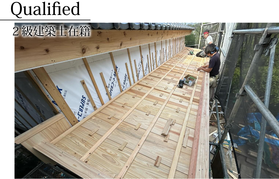 有限会社 佐野工務店には、二級建築士が在籍しております。職人としての確かな技術だけでなく、建築の専門知識や法規に関する知識も兼ね備えたスタッフが、お客様の住まいづくりをサポートいたします。リフォームや増改築、新築工事においては、建物の構造や法律上の制限など、専門的な知識が必要となる場面が多くあります。